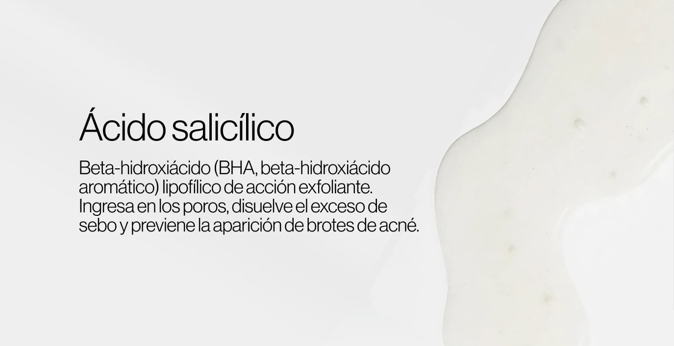 Contiene ácido salicílico al 2 %, acompañado por un combo sinérgico de siete ingredientes activos que complementan su acción: